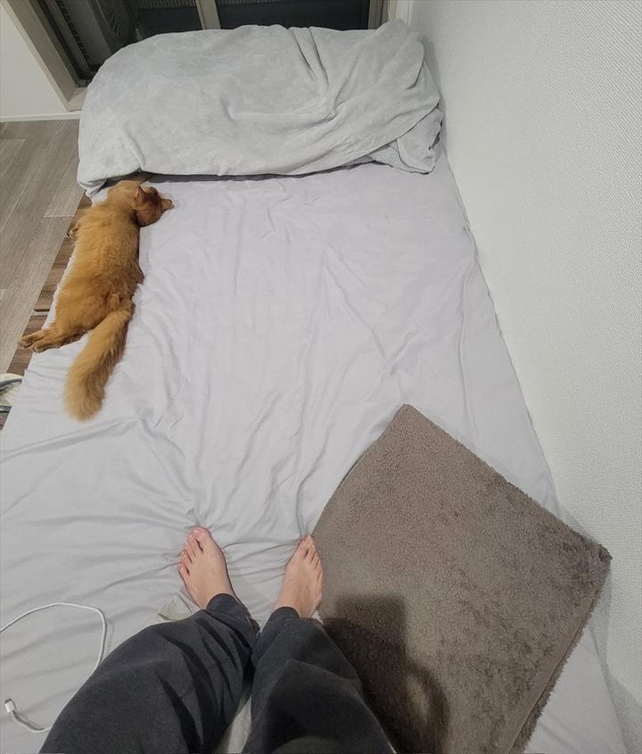 ・今日はしっかり飼い主が大の字で寝られるスペースあるね。