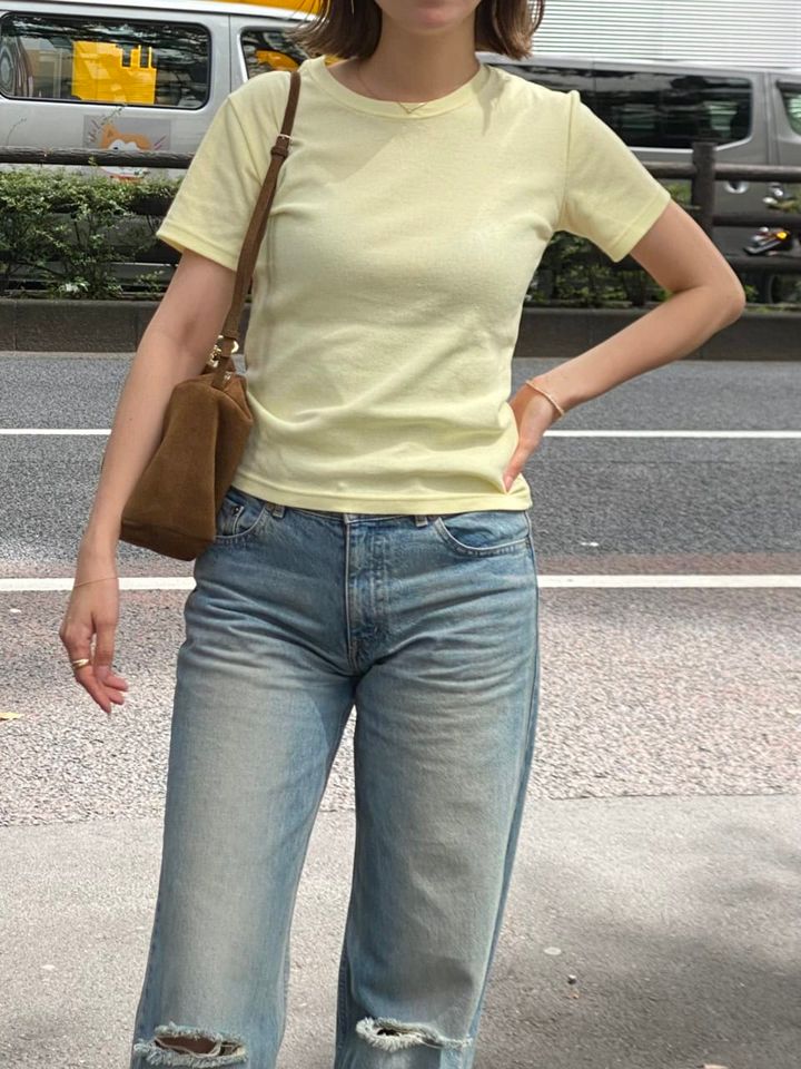 ボトムとのバランス◎ レモンイエローのTシャツで旬なスタイルに