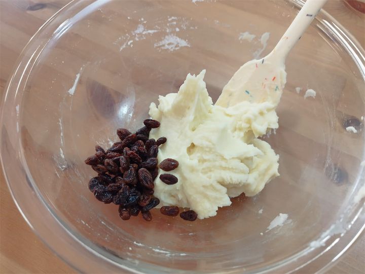 いよいよレーズンを加えて混ぜます。