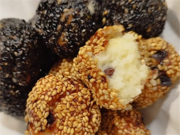生地にレーズンが入っていることで、本家の中華風ゴマ団子とは違い、レーズンの味をしっかりと感じる洋風スイーツになっています。