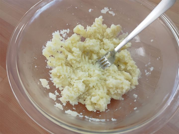 2. じゃがいもは茹でて熱いうちにしっかり潰す。