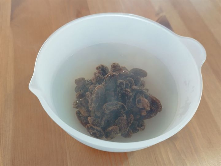 1. レーズンは熱湯で5~7分戻す。