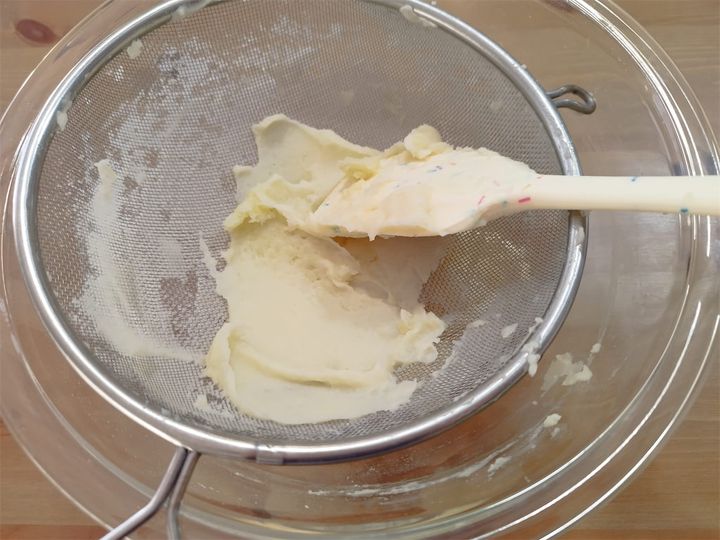 このままでは、食感がゴロゴロしたゴマ団子になるのでは!?と思い、急遽、生地を裏ごしすることに。