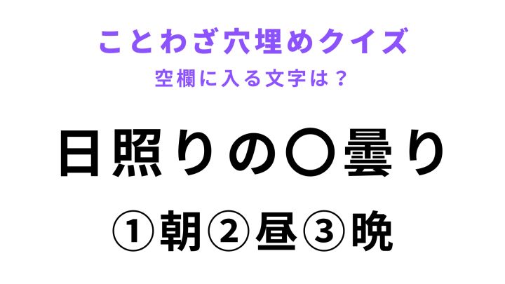 ことわざ「日照りの〇曇り」には、なんの文字が入る?
