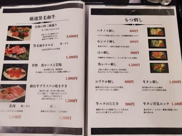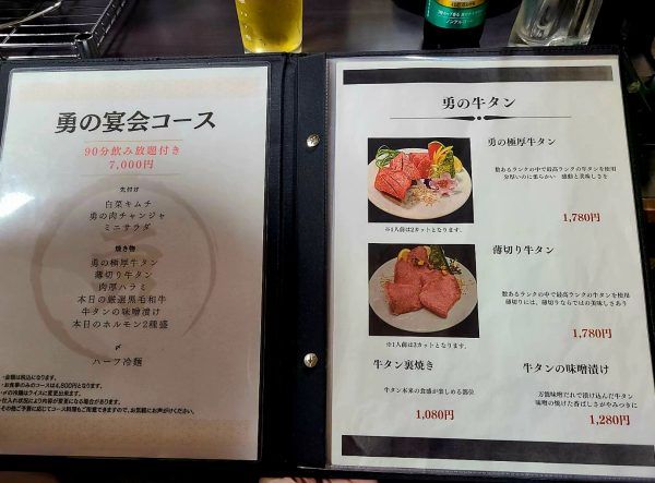 メニューを開くと、これこれ、 初めのページに記載されている「勇の極厚牛タン」。