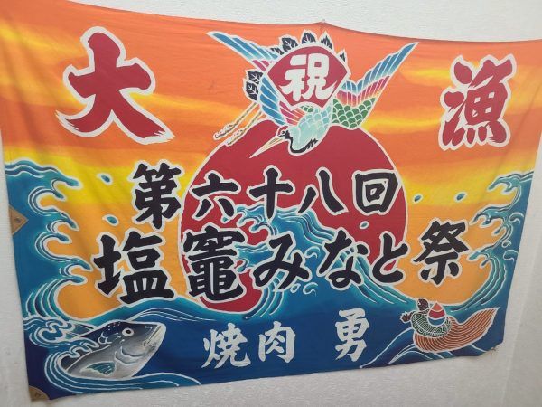 階段の途中には大漁旗もありました。