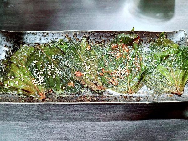 個人的にオススメだったのが「エゴマの葉のキムチ漬け」(400円)。