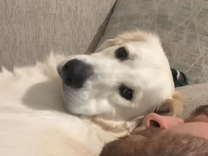 3. ソファで寝ていた犬さんが、飼い主の呼びかけに甘えんぼ全開モードに!