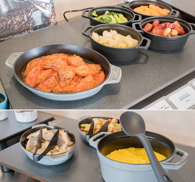 ▲グリル野菜やスクランブルエッグ、焼き魚など
