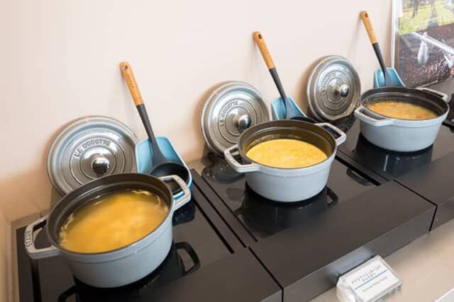 スープやお味噌汁も忘れずに味わっておきましょう。内容は季節などによっても変わりますが、今回の「具だくさんミネストリーナ」や「エビとマッシュルームのチャウダー」は、食べ応えがあってこだわりを感じる味。特に大阪は出汁文化の街。「一番だしの味噌汁」は、しっかり出汁感を味わっておきましょう。