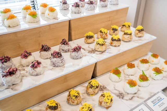 可愛らしいおにぎりが並びます。この日はイクラが飾られた塩おにぎり、柴漬けと白ごま、肉みそと錦糸卵の混ぜおにぎりが用意され、どれもミニサイズなので様々な味を試せます。