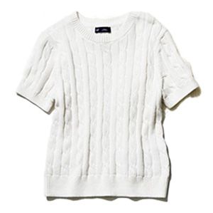 素肌に着てもチクチクしない、ソフトな肌あたりのコットン素材。ニット特有の編み模様がふつうのTシャツにはないアクセントに。 ケーブル編み半そでニット/Gap