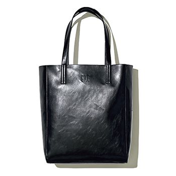 書類を収納しやすい縦長型。オフィスシーンにも似合うスクエアシルエットなうえ、かしこまりすぎないひかえめなロゴもポイント。やわらかい素材のため、入れ口を折りたたんでクラッチのように持つことも可能。 黒トートバッグ(オンライン限定・38×31×10)/Gap