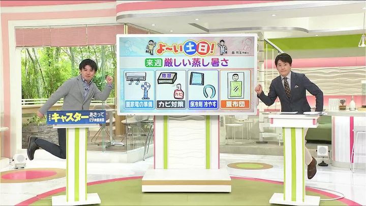 よ~い土日ポーズの児玉晃気象予報士とHBC堀啓知アナウンサー