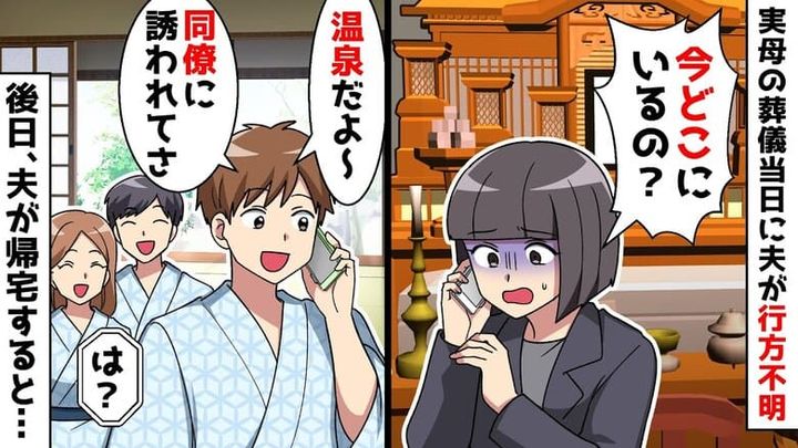 3. 「今温泉♪同僚に誘われちゃって!」実母の葬儀当日に姿を消した夫。まぁいっか♡夫も同僚も両成敗!だって…!