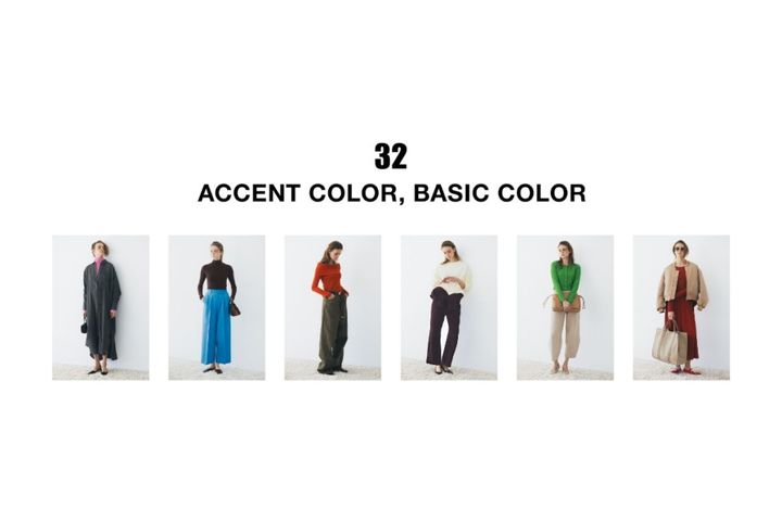 ヴィヴィッドからパステルまで今季は色幅が広いから。どんな色とも合わせやすいベーシックなニュアンスカラーを軸に、白黒よりも穏やかに、多彩な色合わせにチャレンジ。