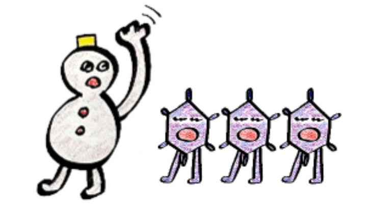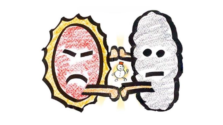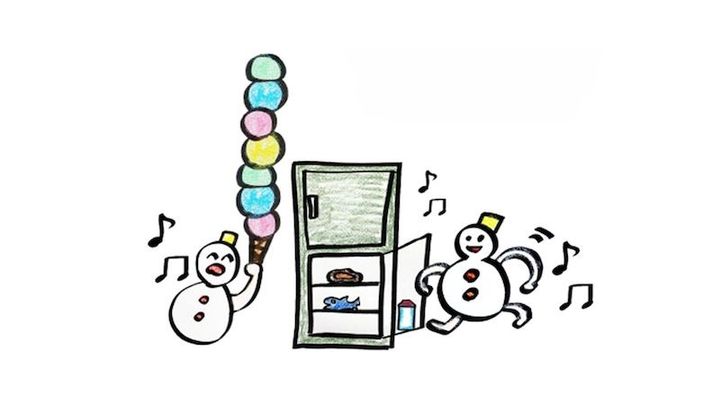 「雪ダルマとアイス」(イラスト:児玉晃気象予報士)