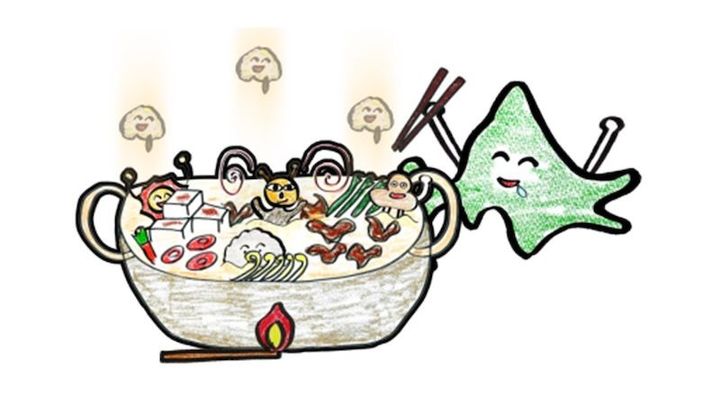 鍋がおいしい季節になったのでしょうか。ただ、宇宙人などキャラクターたちが煮られていて、かつ笑顔なのが、こわいです。