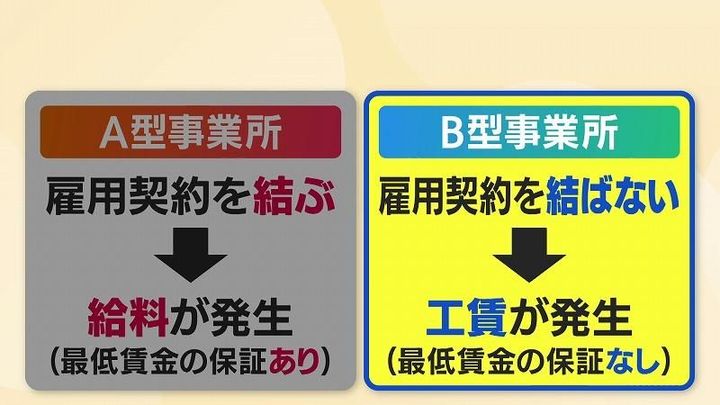 一方、雇用契約を結ばない『B型』の場合、工賃と呼ばれる対価に最低賃金の保証がありません。