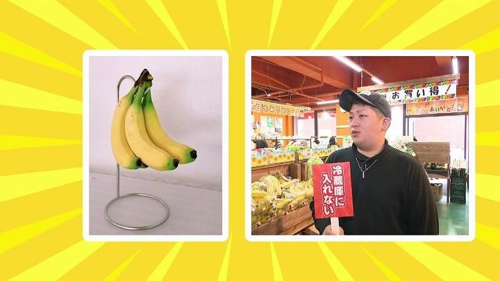 「熟すのがとまっちゃうので、吊り下げておくのがいい。バナナスタンドが売っているので、それにかけて保存するのが1番日持ちすると思います」