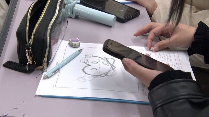 13日、札幌デザイナー学院の学生が描いていたのは「ハンドサインでストップ運動」のロゴマークです。