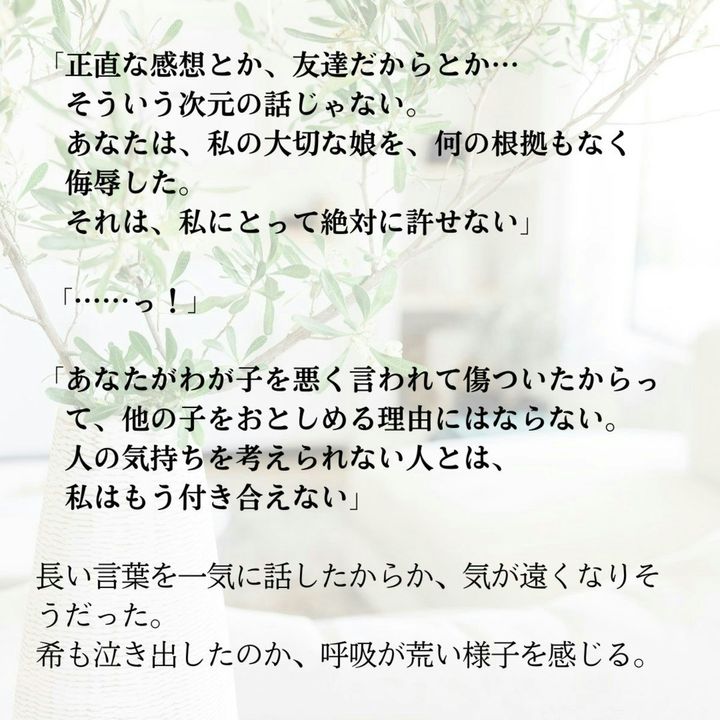「友達だから心配している」という希でしたが、たとえ、それが本心であったとしても、憶測で決めつけ、相手を傷つけたり侮辱をしたりしていい理由にはなりません。親しい仲にも礼儀や敬意を忘れてはいけませんよね。