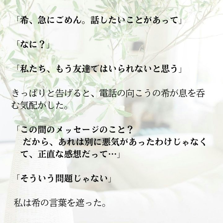 その後、藍子は希との歪んだ友人関係に「けじめをつけよう」と決意。改めて、電話をかけます。