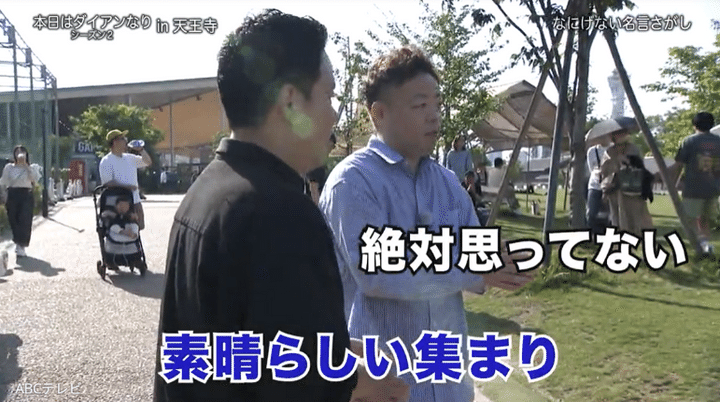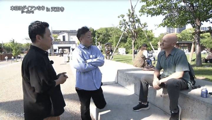 13日(金)の『本日はダイアンなり!シーズン2』は、天王寺で街ロケ。天王寺駅そばの「てんしば」でのんびりする人たちに声をかけていく。