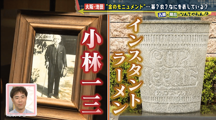 謎のモニュメントが何を表しているか知るべく、河合と古川アナは池田駅の北側を調査することに。しばらく歩いた2人は、阪急阪神東宝グループ創始者・小林一三氏の記念館にたどり着いた。やがて彼らは、「(謎のモニュメントは)池田にゆかりのある小林一三さんか、インスタントラーメンが関係している」と考えを絞ったが、どちらもハズレだった!