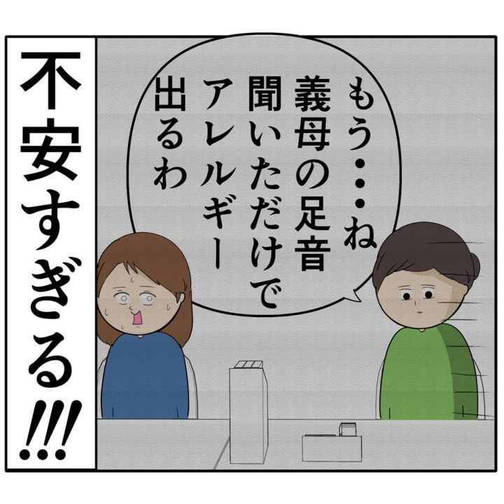 無表情で俯きながら「もう・・ね、義母の足音聞いただけでアレルギー出るわ」とぼやいていた同僚の姿を思い出し、「不安すぎる!!!」とますます同居へ拒否反応を示すさくらさん。