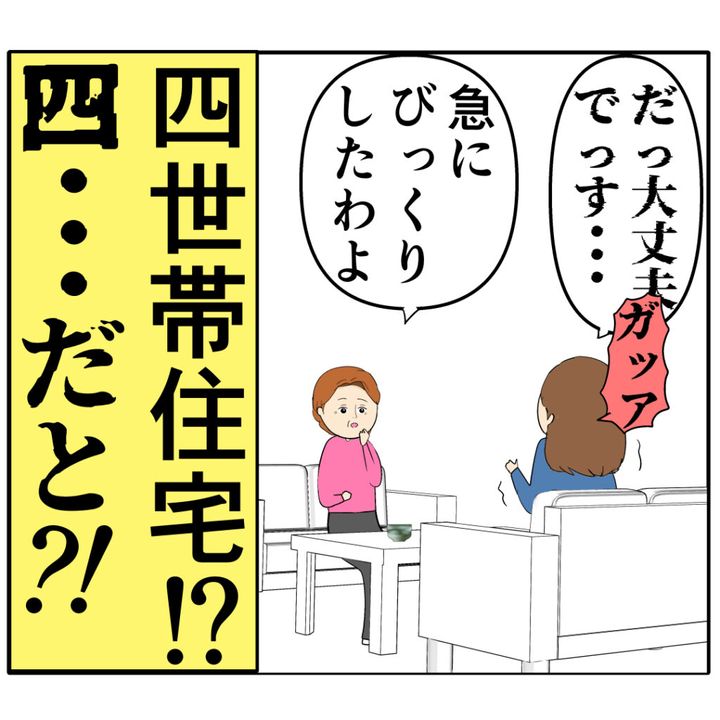 「だっ大丈夫でっす」と何とか答えたさくらさんですが、頭の中では先ほどの義母の衝撃発言がグルグル回っていて「四世帯住宅!?四・・だと?!」と信じられない思いです。