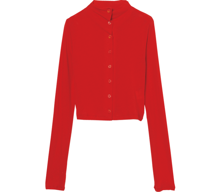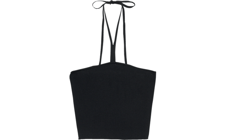 シンプルながら胸元をさり気なく飾るホルターが大人のバランス。ホルターネックトップス¥19,800(イロット/ザ・ウォール ショールーム)