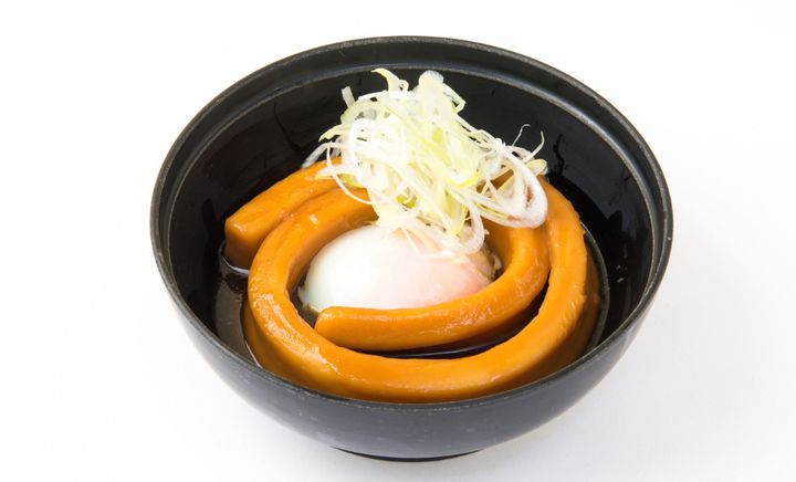 東北自動車道羽生パーキングエリア(上り)の美食&みやげ街「鬼平江戸処」。そのうちの1軒、「五鉄」では『鬼平犯科帳』に登場する「一本うどん」が名物です。東京・日本橋人形町の老舗鶏料理専門店「玉ひで」がプロデュースしており、長さ55㎝の極太うどんに甘めのタレと温泉卵、ネギを和えて味わいます。
