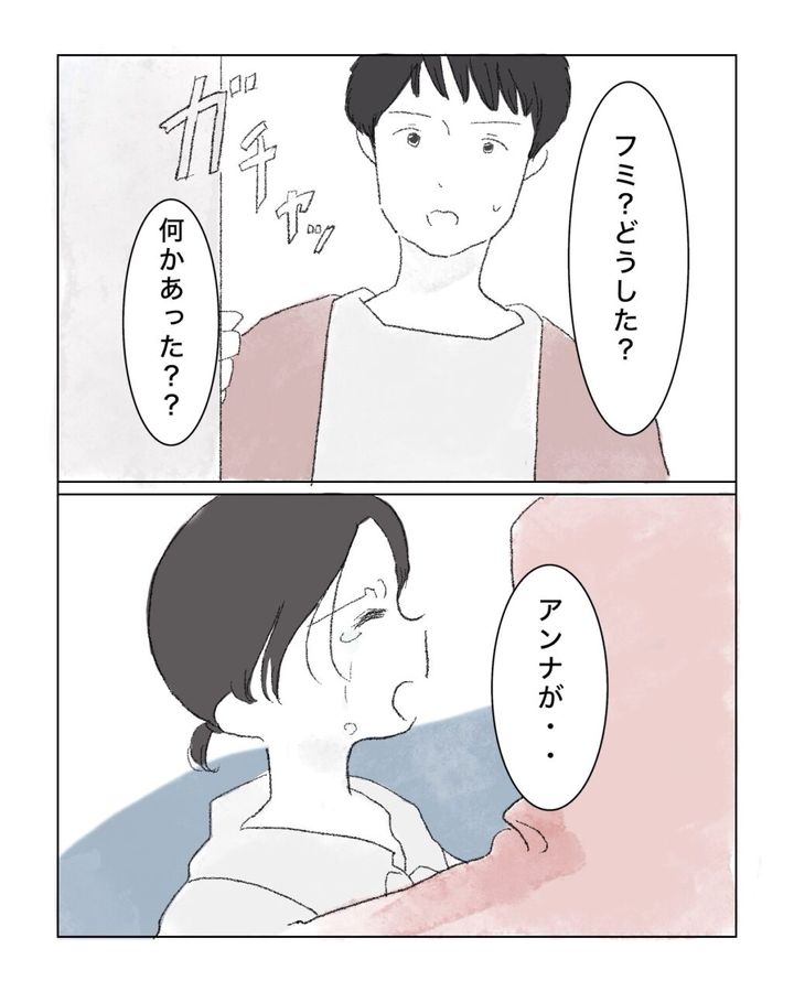 その後自宅に到着すると、「フミ?どうした?何かあった??」と夫が出て来て心配してくれ、「アンナが・・」と全てを話したのでした。