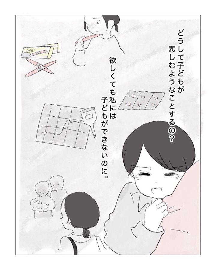 「どうして子どもが悲しむようなことするの?欲しくても私には子どもができないのに」考えれば考えるほど悲しくなる私。