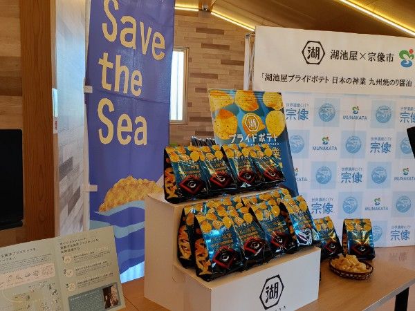 宗像は世界遺産登録された『神宿る島 沖ノ島』のある自然豊かで神聖な場所が多く、何よりも海がきれい、海産物も農作物も美味しい場所。 湖池屋さんは8年前から宗像市の海を守る活動を応援してくれているとのこと、ありがとうございます!