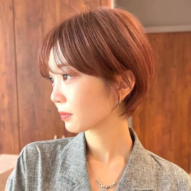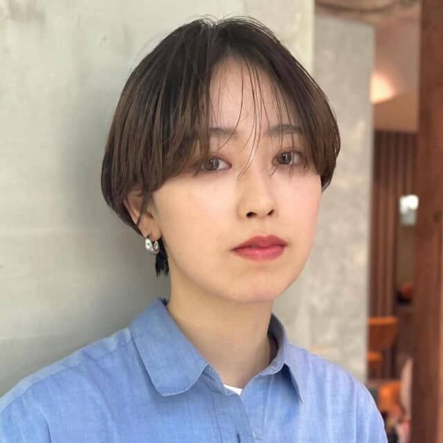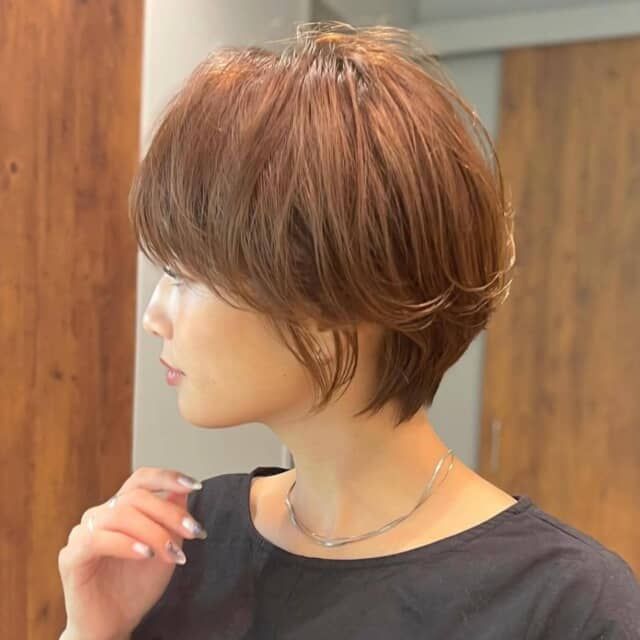 抜け感ショートヘアの魅力は、軽やかな質感と自然な立体感。トップにほどよいボリュームを出し、顔まわりを包むようなカットラインにすることで、気になる輪郭を柔らかくカバーしつつ、全体に軽さを演出します。