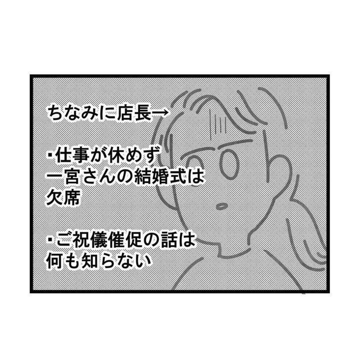5千円の追加ご祝儀をもらうために、遠路はるばる元の職場まで足を運んだ一宮さん。その執念に永吉さんもタッキーもゾッとしたのではないでしょうか。今回はタッキーの家に新郎が訪ねただけでなく、お店にも来た一宮さんですが、店長が機転をきかせてくれたのはありがたいですね。