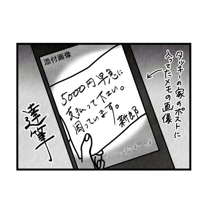 二次会の経験も幹事の経験もなかった2人ですが、新郎側の幹事と協力し、準備から当日の二次会が終わるまで全力で頑張りました。そして式も二次会も終了し、一宮さんも退職した後、一宮さんから「追加のご祝儀を払って」というメールが後輩・タッキーのもとに届きます。驚きつつも無視をしたタッキーですが、新郎新婦の行動はエスカレート。