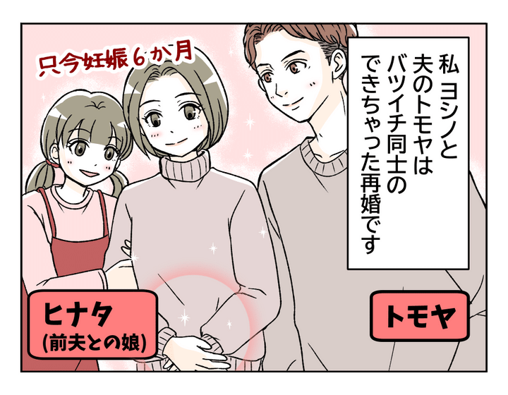 「バツイチ同士のできちゃった再婚」と聞くと、もしかしたら「それってちょっと……」と眉をひそめる人もいるのかもしれません。ですが幸せの定義は人それぞれ。本人が幸せだと感じられる結論を出したのなら、それでいいのです。ヨシノさんは、前夫とのあいだに生まれた娘ヒナタさんとこれから生まれてくる赤ちゃん、それぞれを幸せにしたいと再婚を決めたのだそうです。それなのにまさか、再婚して早々に夫と前妻との息子から嫌がらせをされるなんて……! とはいえ相手は夫と血のつながった息子。解決への道のりが複雑になりそうな予感です。