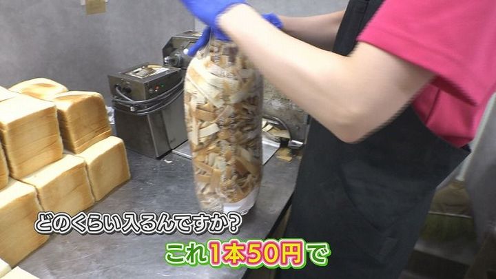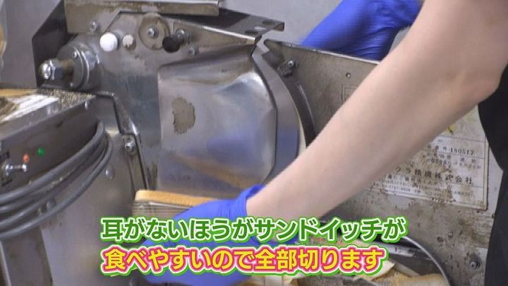 スタッフ:「耳がない方がサンドイッチ食べやすいので、全部切ります。これはこれでパン耳として売ってます」