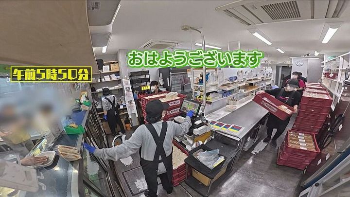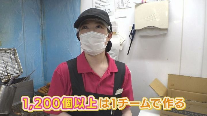 番組スタッフ:「手際がスゴイですね」スタッフ:「これもずっとやり続けてたらこんなになっちゃいます。汗だくですよ。忙しかったらお昼すぎには売り切れてるかもしれないですね」