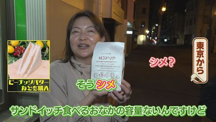 東京から:「ぶっちゃけ、おなかいっぱいなんです今。ジンギスカンを食べてきたので、サンドイッチを食べる容量はないんですけど」番組スタッフ:「シメ?」購入者:「そう、シメ。楽しみです」