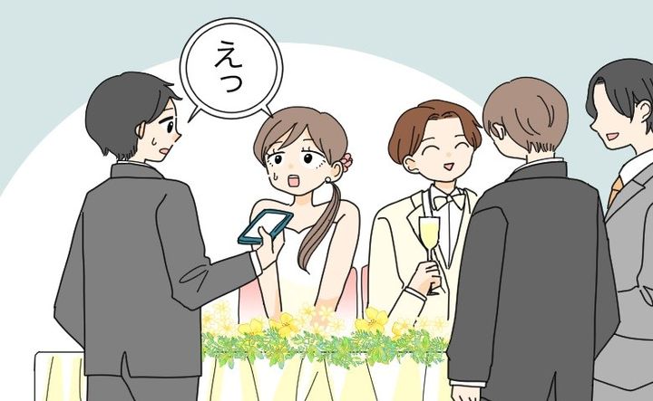 私の結婚式の披露宴でのエピソードです。新郎新婦入場から始まってやっと座れる時間になり、ゲストの方々が私たちのところまで写真撮影などにきてくれるタイミングに。そこで夫の友人たちが集まってくれたのですが……。