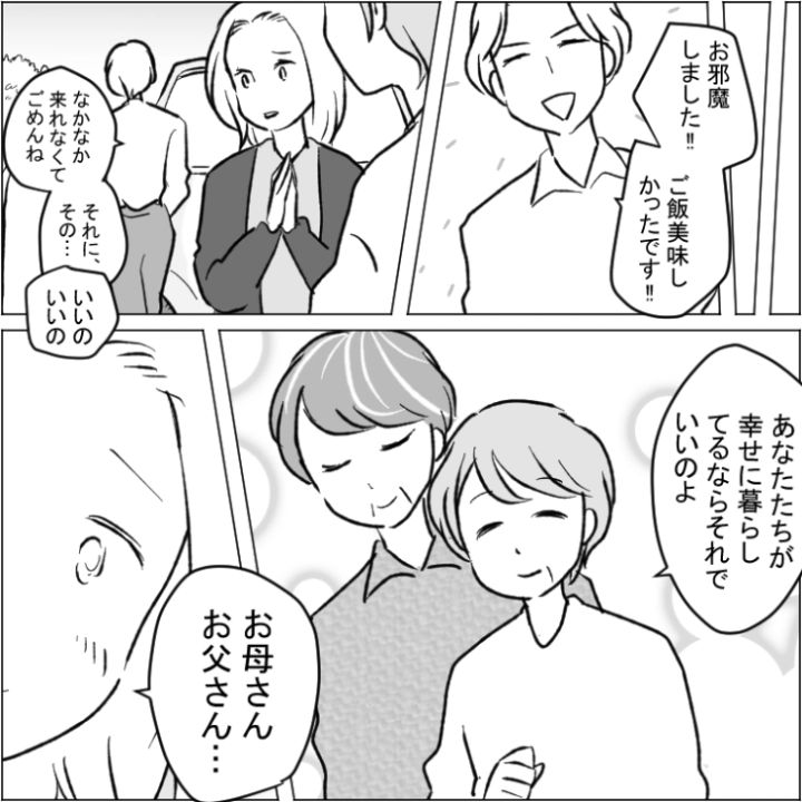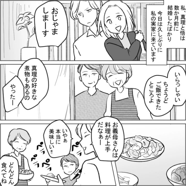 主人公の真理はこの日、旦那の悟と実家に帰ってきていました。真理の後ろにいる悟はどこか不機嫌な表情をしていますが・・・。