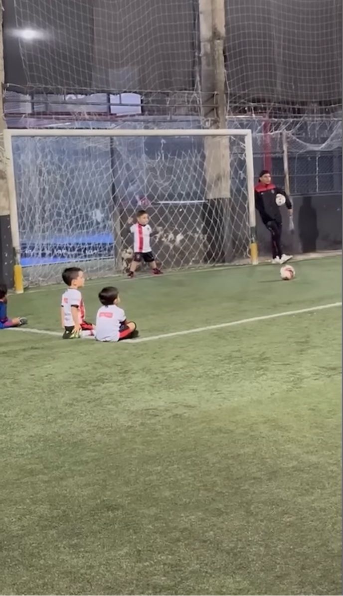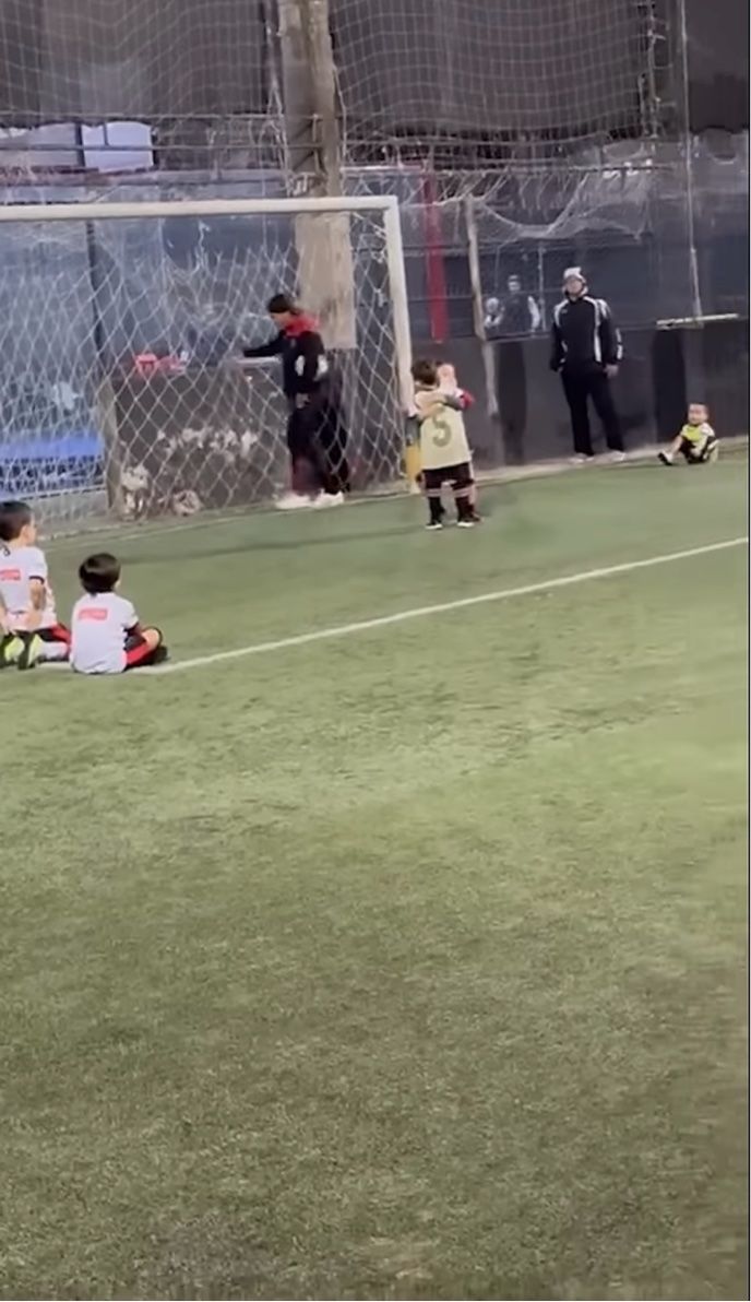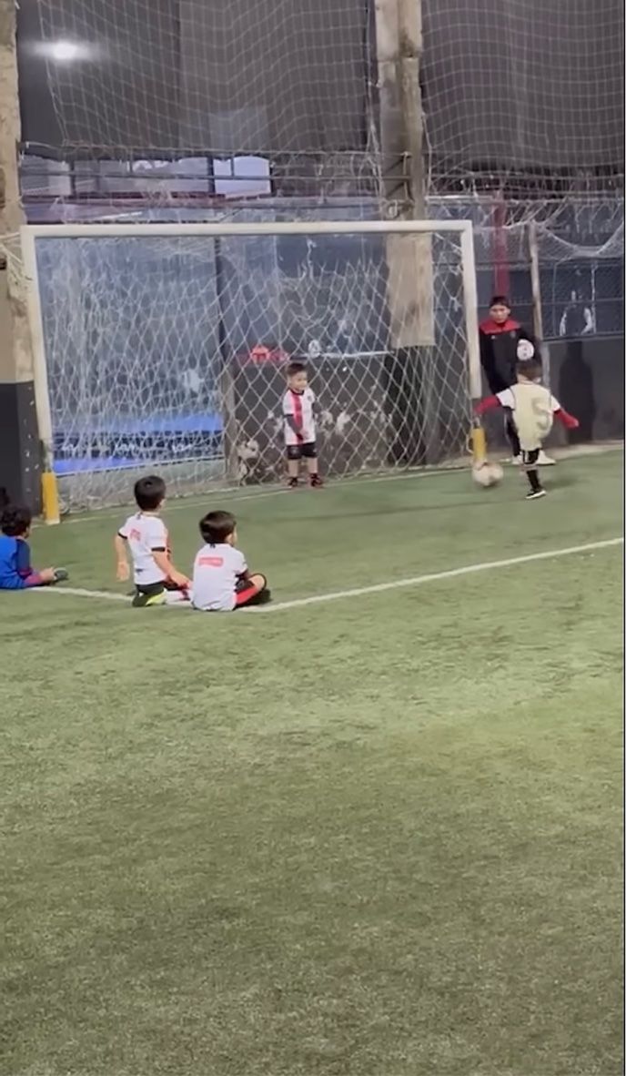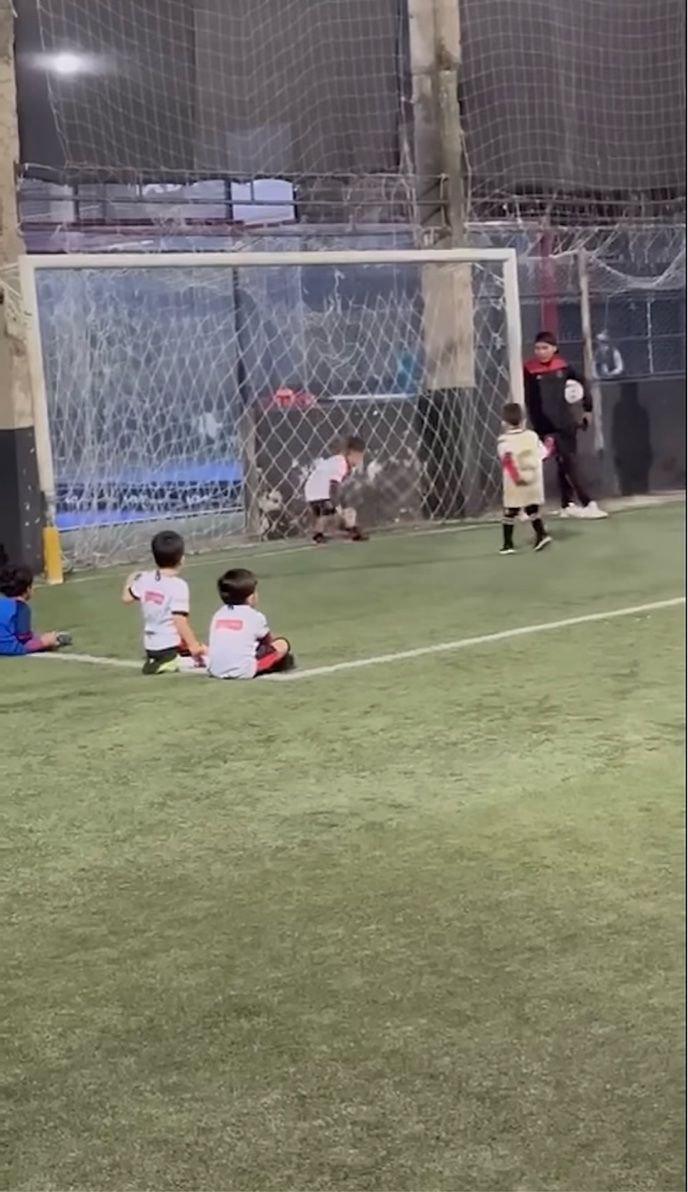 キーパーの男の子は素早く反応するも、ボールは足元をすり抜けてゴールネットの中へ。 この結果に、悔しがったり落ち込んだりするのかと思いきや・・・