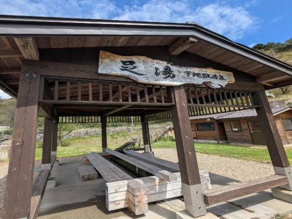 駐車場の脇にある足湯。ちょっとの時間でもつかると気持ちが安らぎます。
