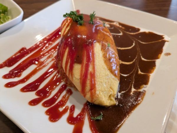 見てください! ケチャップライスに乗った、この見本のようなきれいなラグビーボール型のオムレツ。プルプルなのが写真からも伝わるかと。