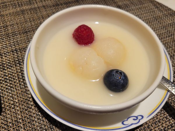 フレッシュなライチ、ラズベリーとブルーベリーがさわやか。食後にぴったりです。