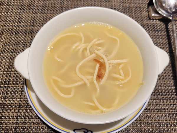 豆腐が麺のよう! 食べ応えしっかりのスープです。鶏のうまみが奥深い。